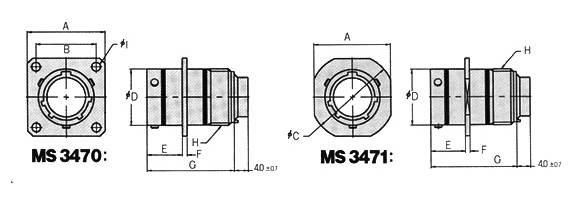 MS3470 : Narrow Flange Mount Receptacle MS3471 : Cable Connecting Receptacle |