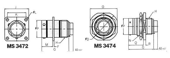 MS3472 : Narrow Flange Mount Receptacle MS3474 : Jam Nut Recptacle